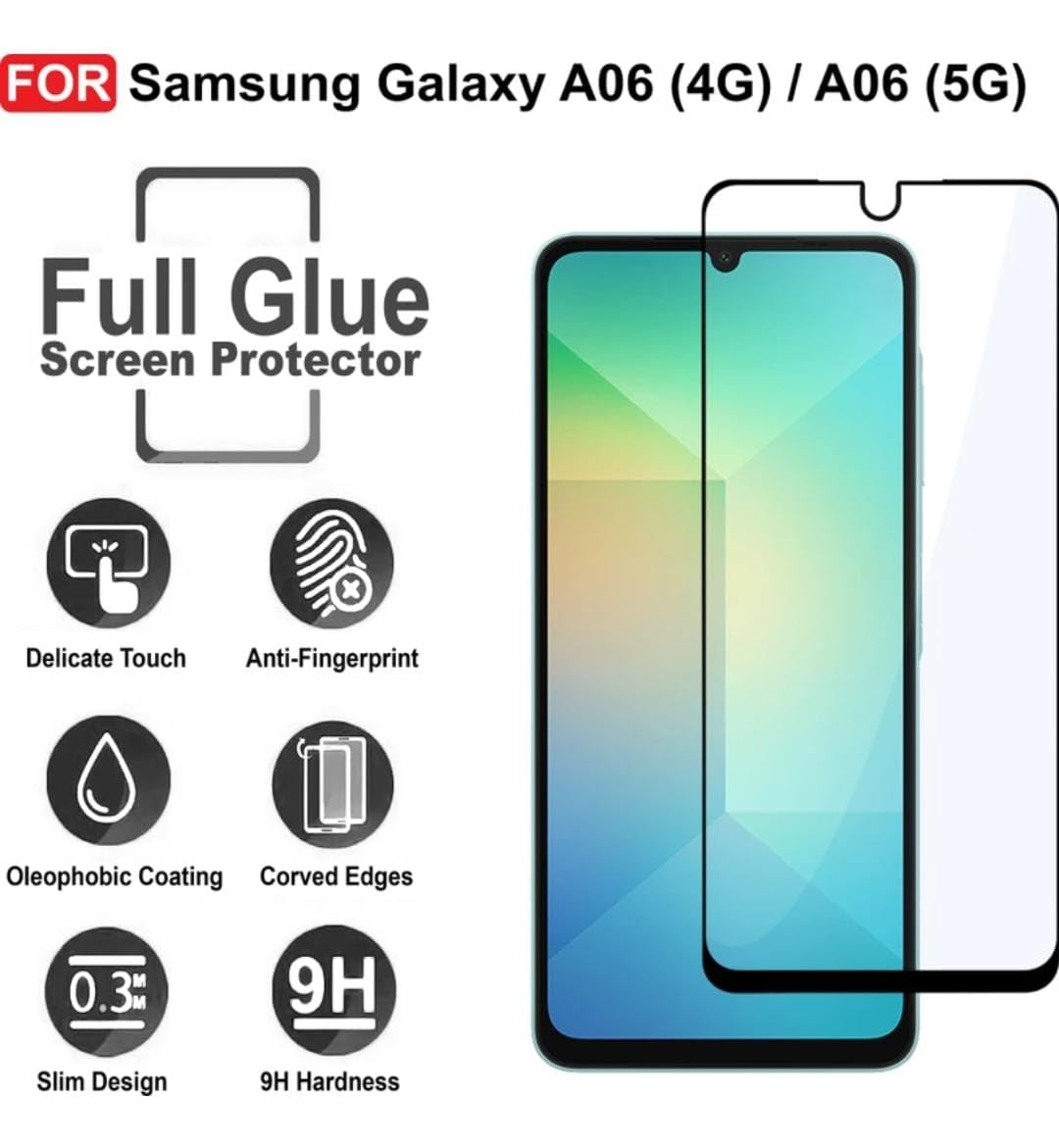 [Benifits]Reliable Protection from Drops. Reliable Protection from Scratches. Easy Way to Maximize Resale Value. [Product Features]Anti GlareScratch resistanceBubble free applicationOriginal screen brightnessRounded edges to prevent any cut over your fingerHigh oleophobic coating for antifingerprint property Extreme clarity and responsiveness installation.[Kit Contains]1 Tempered glass screen protector For Samsung Galaxy A06/M06/F06, 1 Wipes Kit ( Dry & wet wipes)