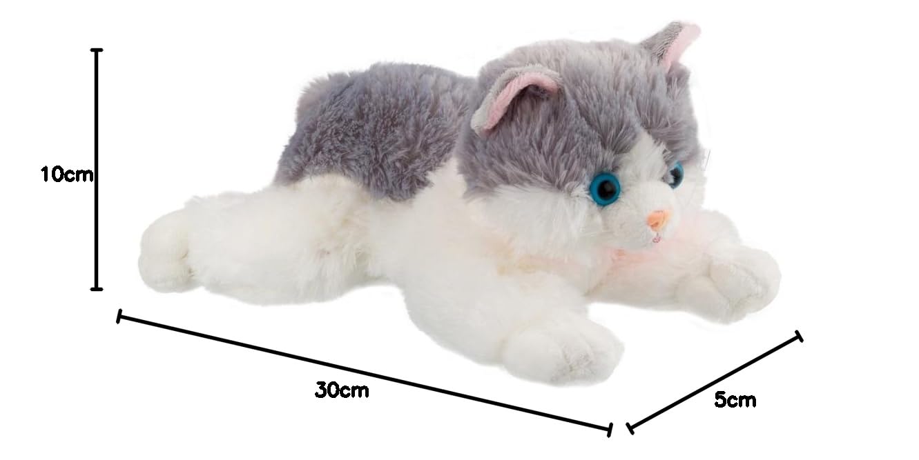 Tickles Cat Soft Stuffed Plush Animal Toy for Kids Birthday Gifts (Size: 30 cm Color: White and Grey)