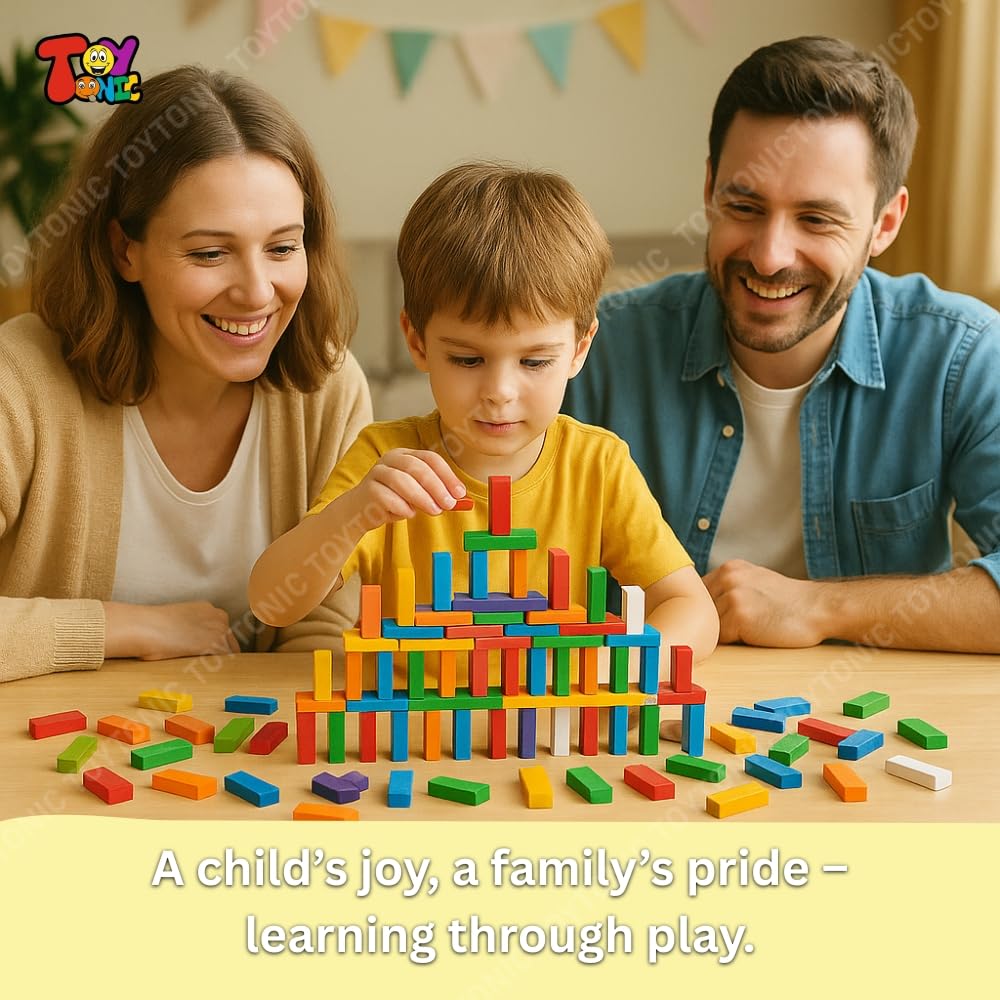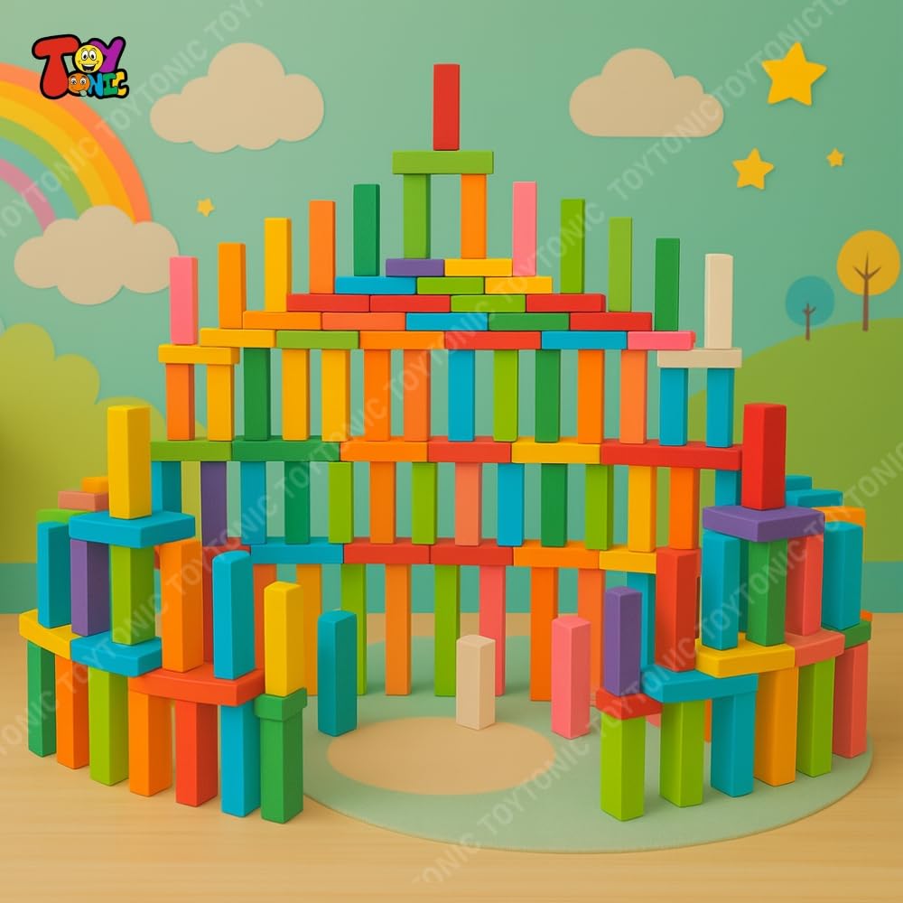 TOYTONIC 120 pcs Educational Wooden Building Blocks for Kids – Colorful Domino Set for Boys & Girls – Fun Indoor Games & Party Activities – Toys for Ages 3 to 12 Years (12 Colors)