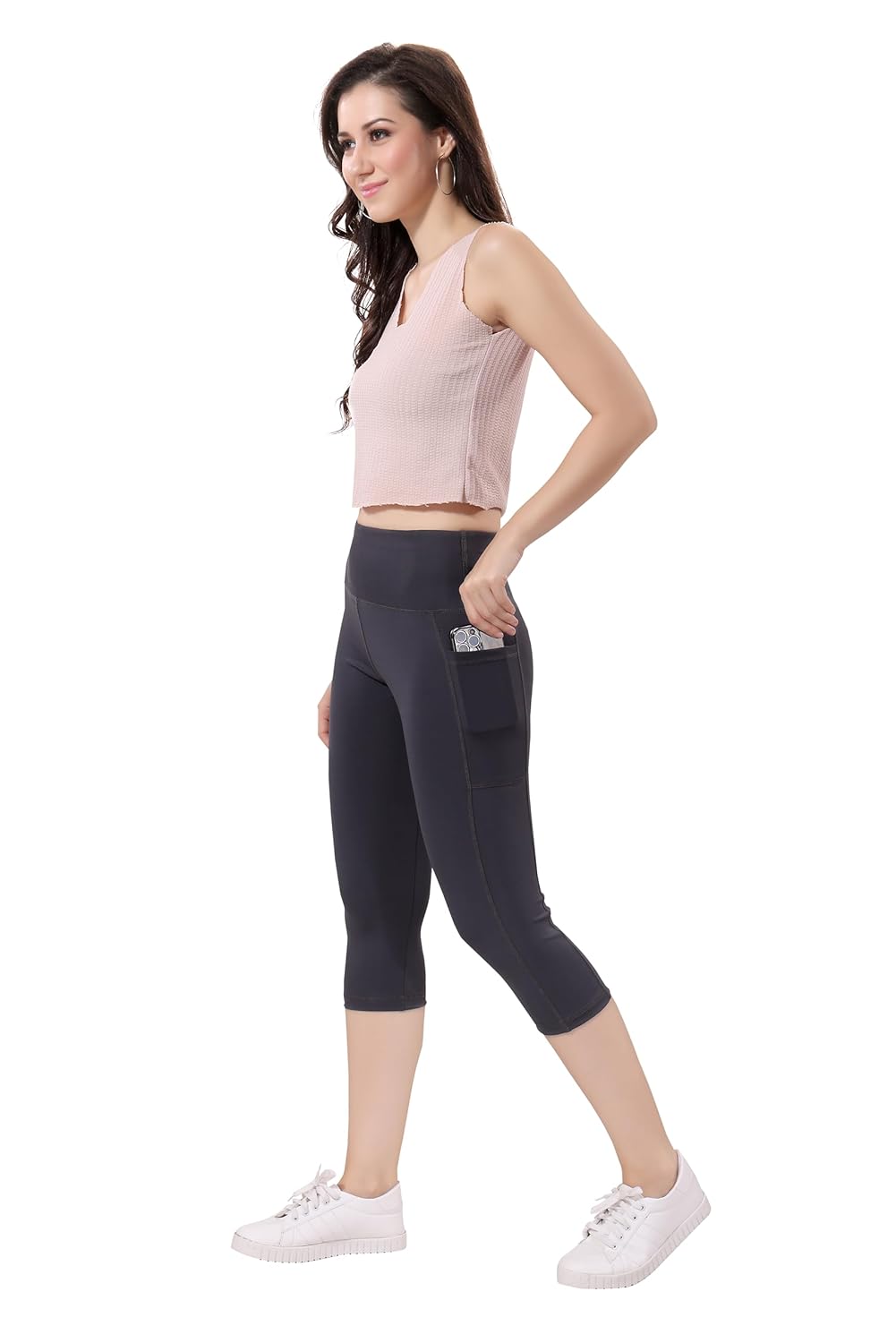 TRASA Active 3/4th Yoga Pants for Womens Gym High Waist with 2 Pockets, Tummy Control, Workout Pants 4 Way Stretch Yoga Capri – Available Sizes – S, M, L,XL, 2XL,3XL,4XL