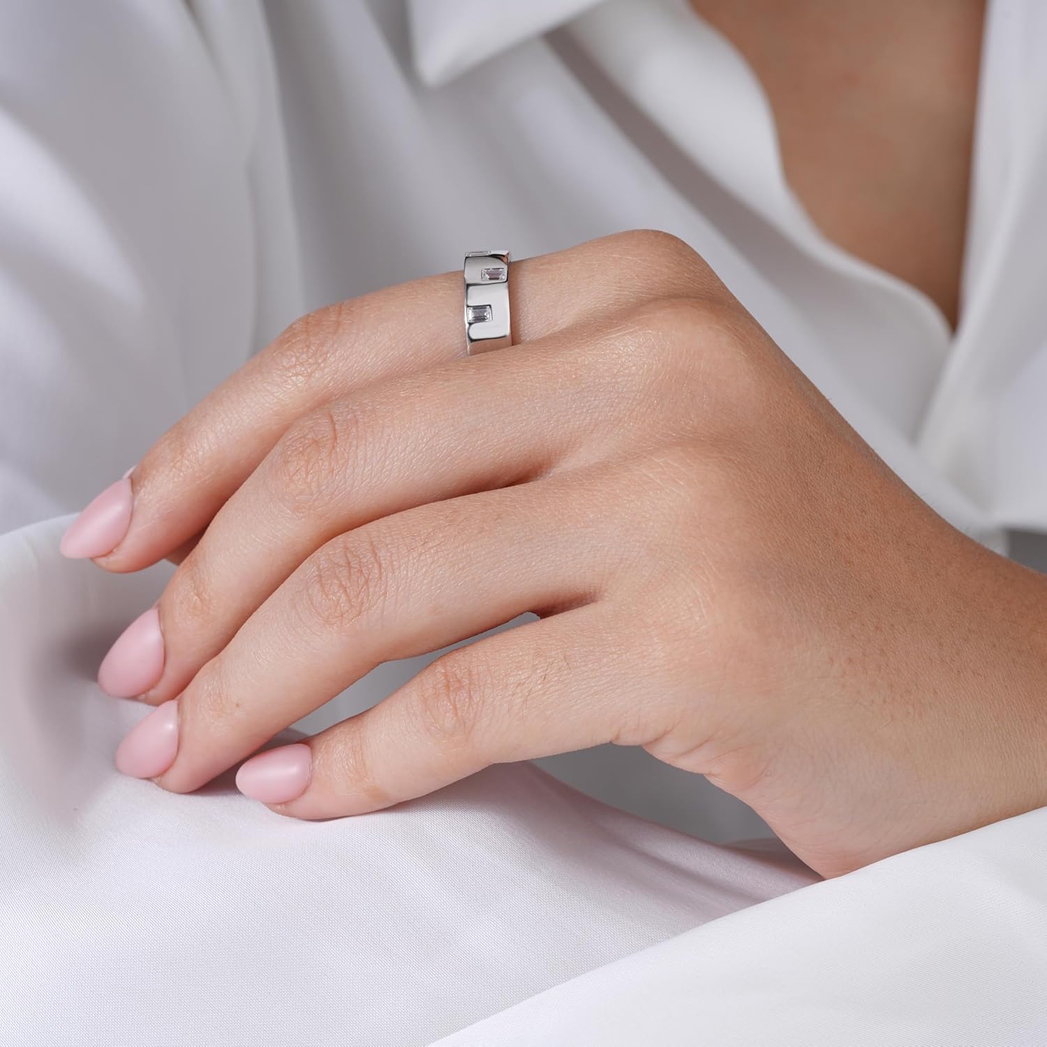 Trillion Cut Stone Look 925 Sterling Silver Ring for Women | Premium CZ Solitaire Ring with Pavé Band Elegant Minimalist Engagement Style Ring Skin Friendly Gift for Wife, Girlfriend