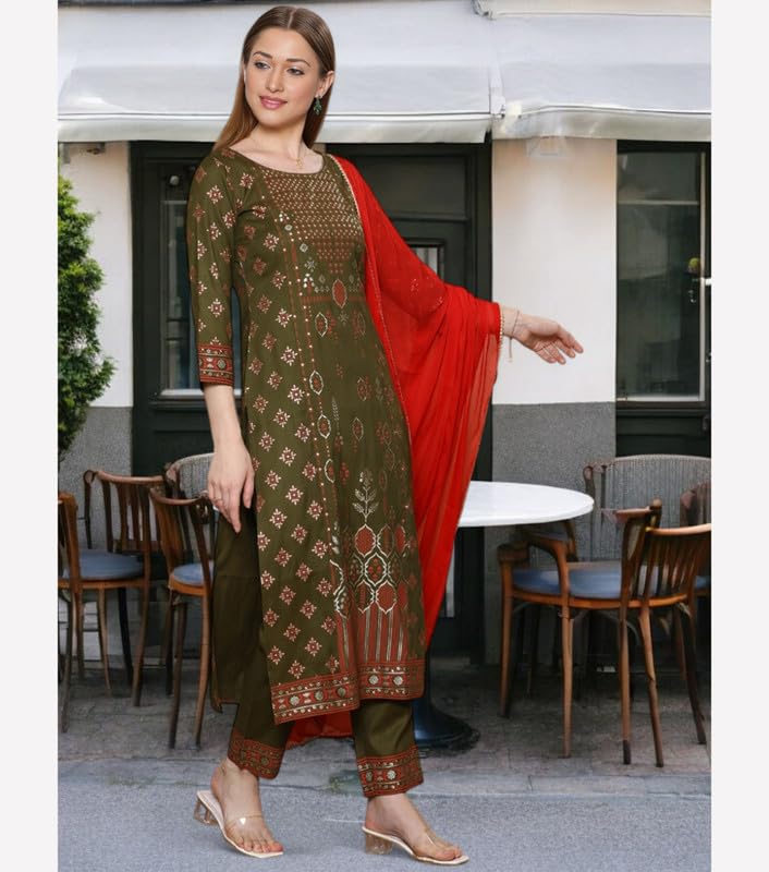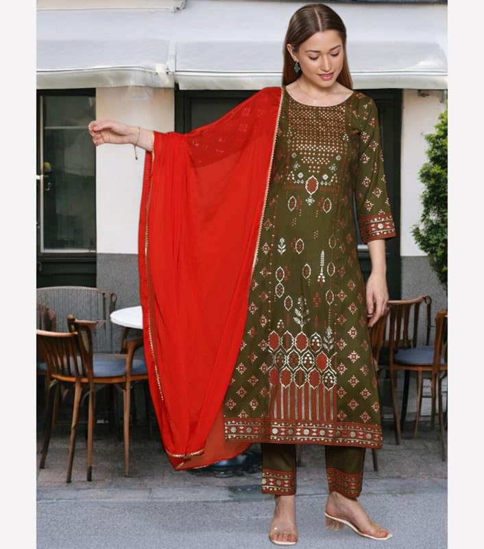 True Shape Cotton Suits for Women with Dupatta | Stylish Ethnic Rayon Foil Print 3 Piece Kurti Pant to Casual, Party Kurta Sets for Woman