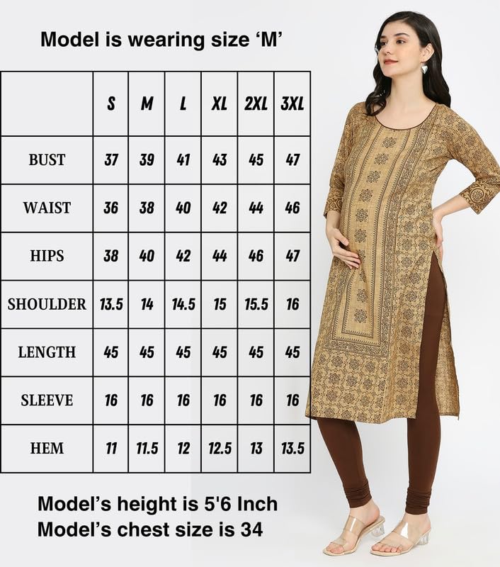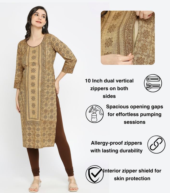 True Shape Maternity Dresses for Women Cotton | Printed Feeding Aline Kurta with Dual Nursing Zippers in Polyester for Pre & Post Partum