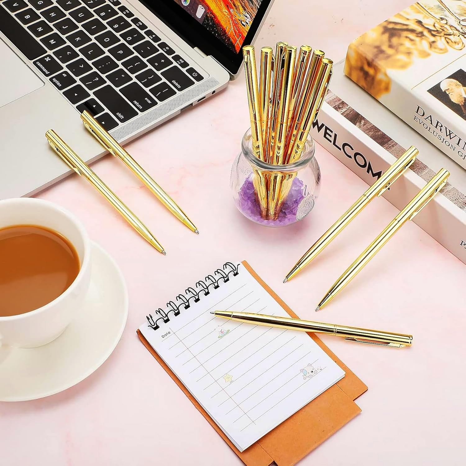 UJJi Slim Golden Color Blue Ink Medium Point Pack of 5 Ball Pen