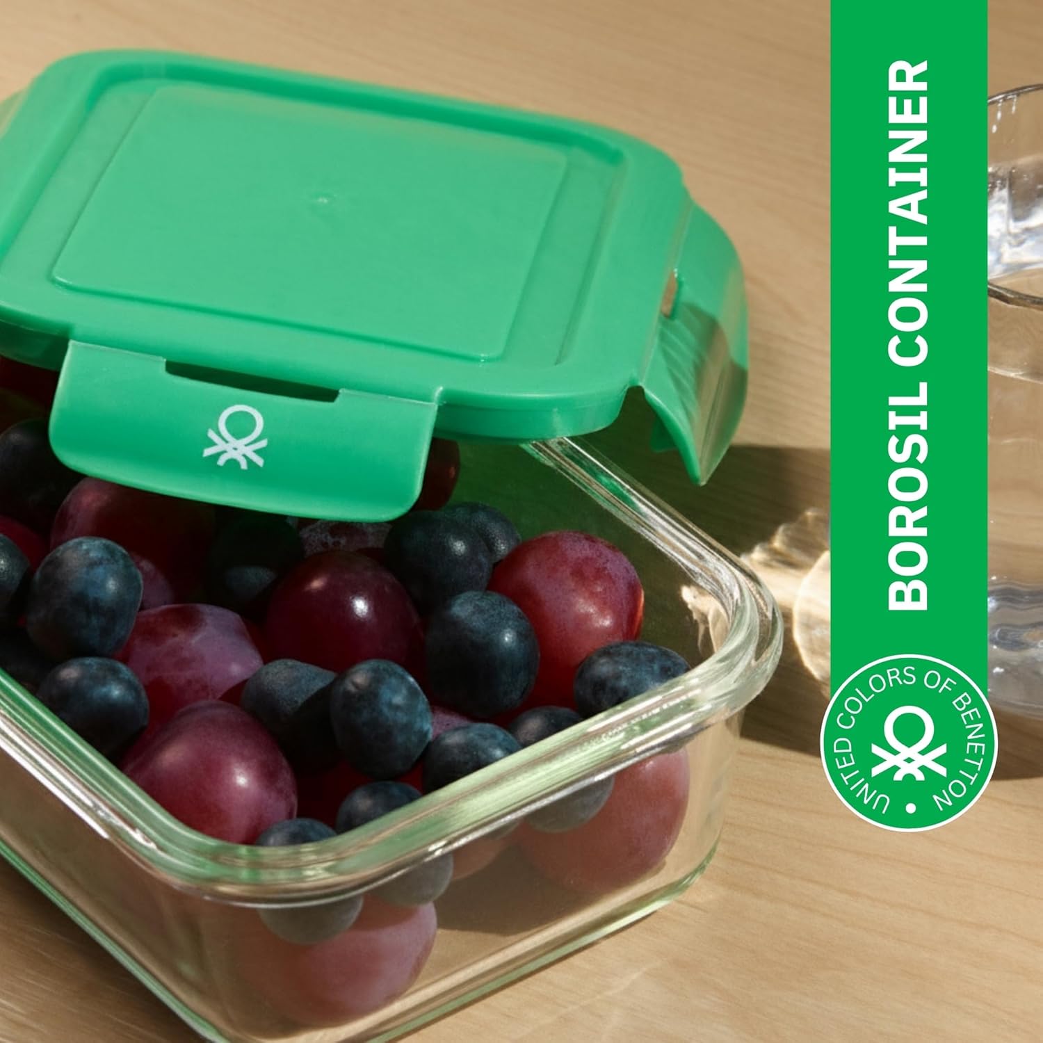 United Colors of Benetton 840ML Borosilicate Glass Food Storage Container with Airtight Green Lid – Leakproof, Microwave, Oven, Freezer & Dishwasher Safe – Durable & Reusable Lunch/Dinner Box