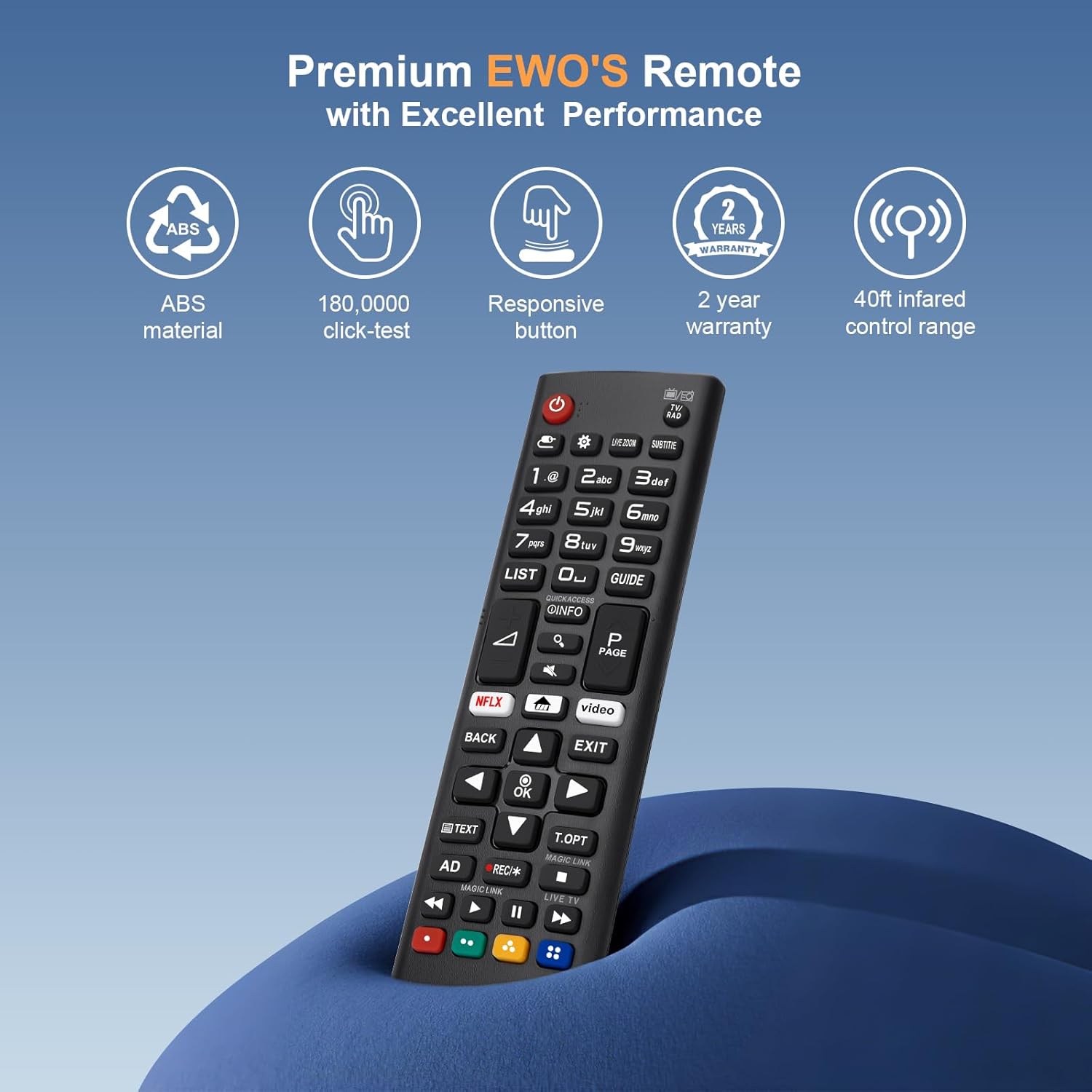 It is compatible with All LG LCD, LED, HDTV, UHD, OLED, 3D, 4K Smart TV. This TV Remote control is made of high-quality ABS material, which is known for its durability, toughness, and resistance to impact.
