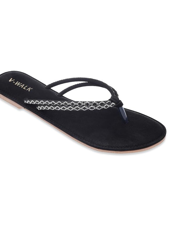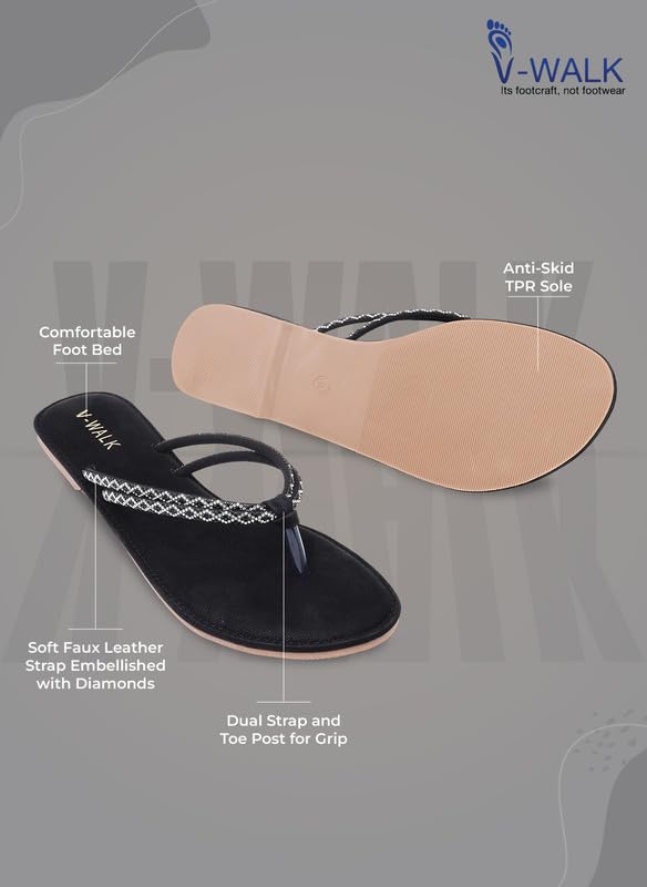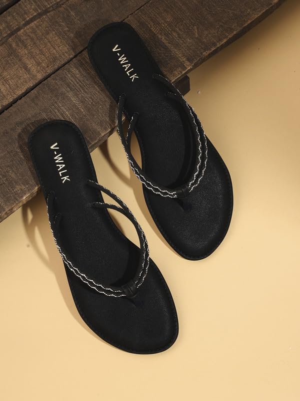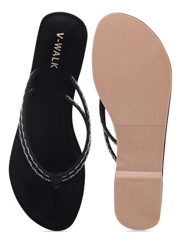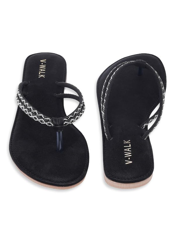 V-WALK Women’s Big sizes Casual Ethnic Flats | Elegant Slip-On Toe Ring Sandals