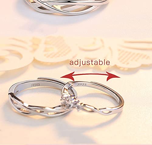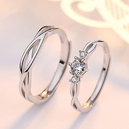 Valentine Gifting Love Silver Plated Classic Solitaire Adjustable Couple Rings for Lovers Promise Engagement Wedding Band Crown ‘King Queen” American diamond 925 Sterling ring Rings for girls women Men Boys