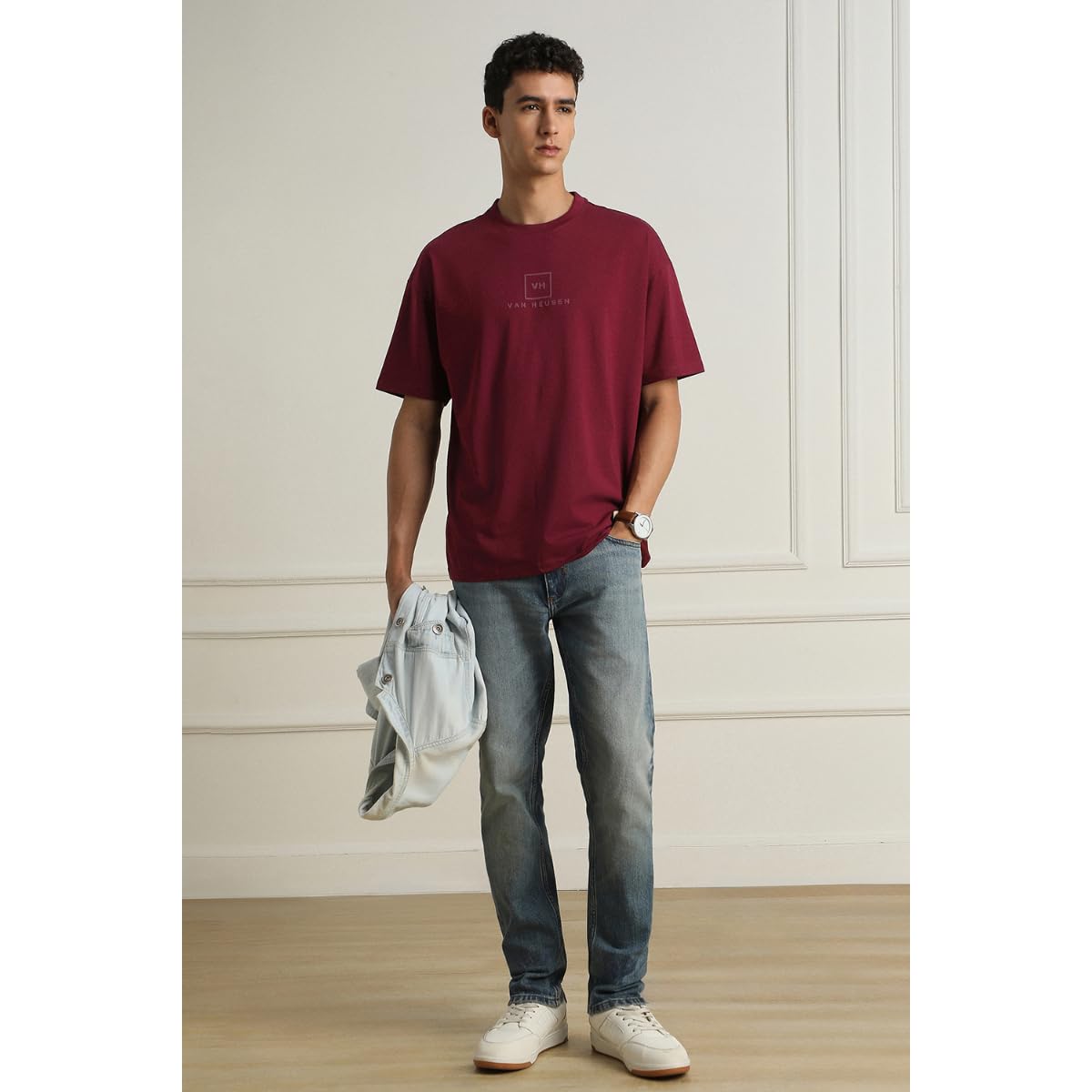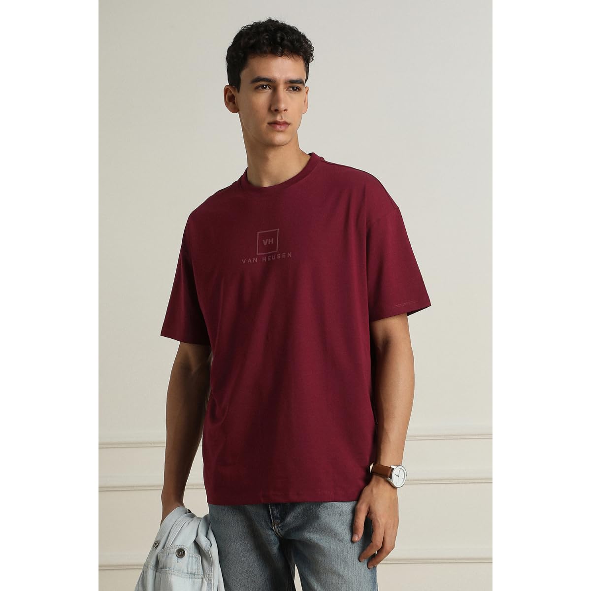 Van Heusen Men’s Premium Cotton Oversized Drop Shoulder Brand Logo T-Shirt