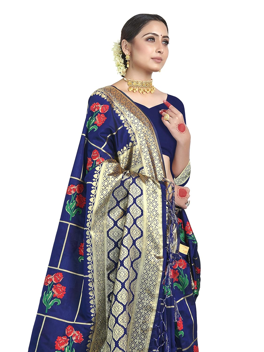 Vardha Women’s Banarasi Art Silk Saree with Unstitched Blouse Piece – Zari Woven Work Sarees for Wedding