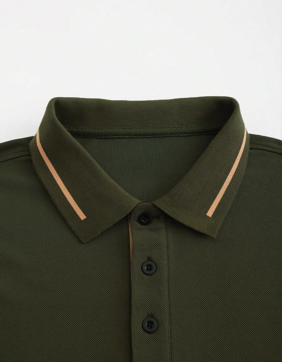 Veirdo® Pure Cotton Half Sleeves Regular Fit Plain Solid Classic Polo Colored Collar T-Shirt for Men (Colors: Olive, Maroon, Navy, Black, Green & Orange)