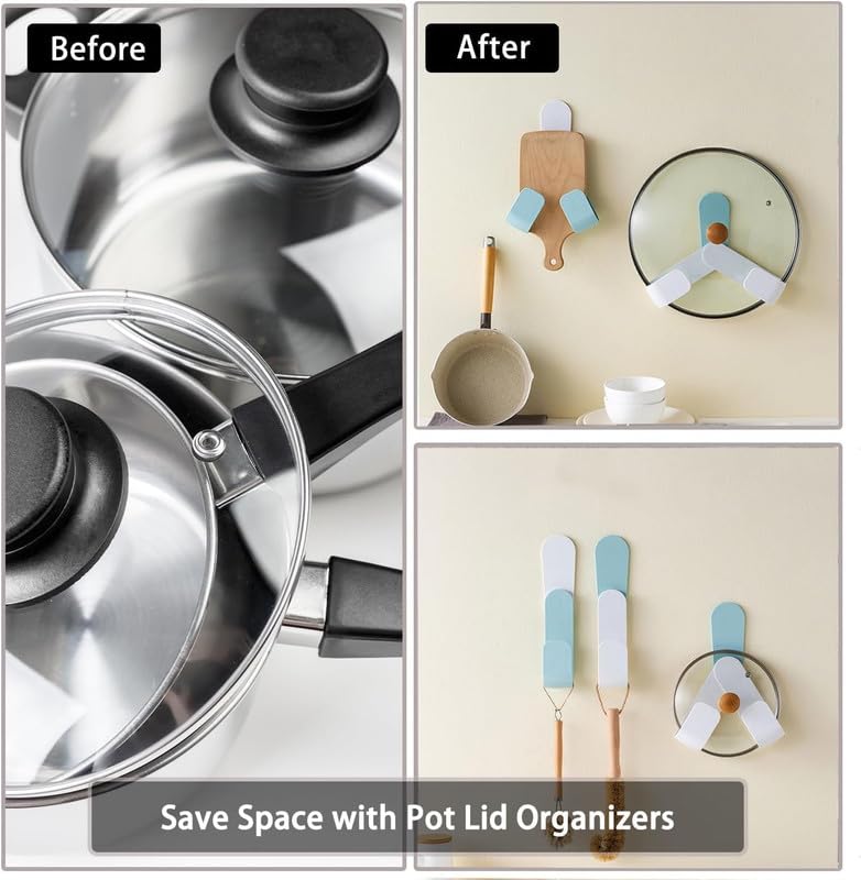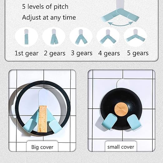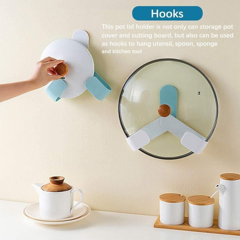 Self Adhesive Pot Lid Holder No-Punch No-Drill Wall-Mounted Rotatable Pot Lid Rack Adjustable Hanging Pan Cover Organizer Cutting Board Storage Kitchen Household Set Kitchen Tools Features: