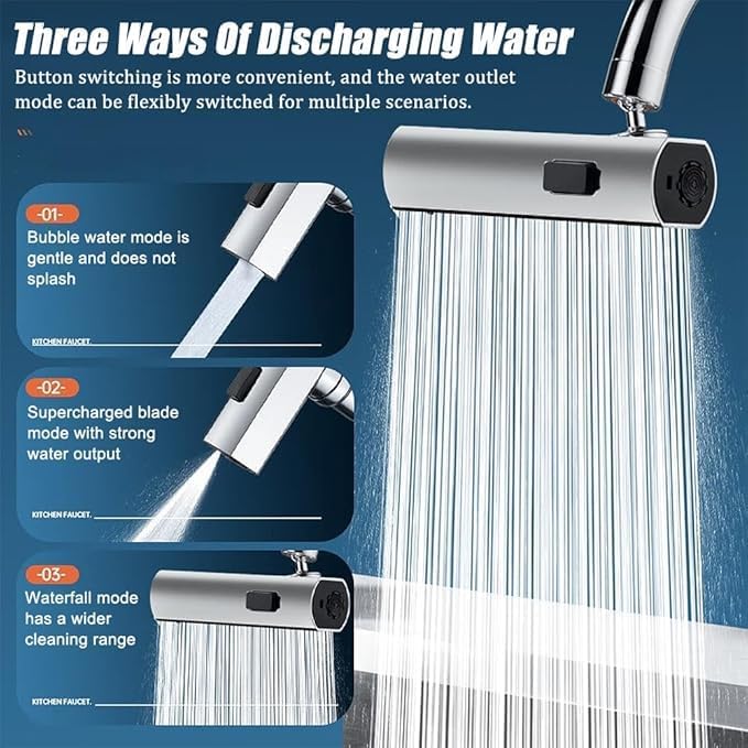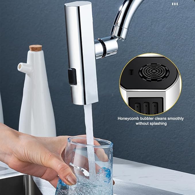 Transform your kitchen experience with this sleek and modern tap featuring an innovative adjustable flow pattern. The chrome-plated finish adds a touch of sophistication while offering durability and resistance to daily wear. The ergonomic single-handle design allows for effortless control of water temperature and flow rate with just one hand. This tap’s standout feature is its adjustable spray pattern, which lets you switch between a concentrated stream for filling pots and a gentle shower spray perfect for washing vegetables or dishes. The high-arc spout provides ample clearance for large cookware, while the smooth-operating mechanism ensures consistent performance. The contemporary styling harmoniously blends with various kitchen décors, making it an excellent choice for both kitchen upgrades and new installations. The polished chrome surface is easy to clean and maintain, keeping your kitchen looking pristine.