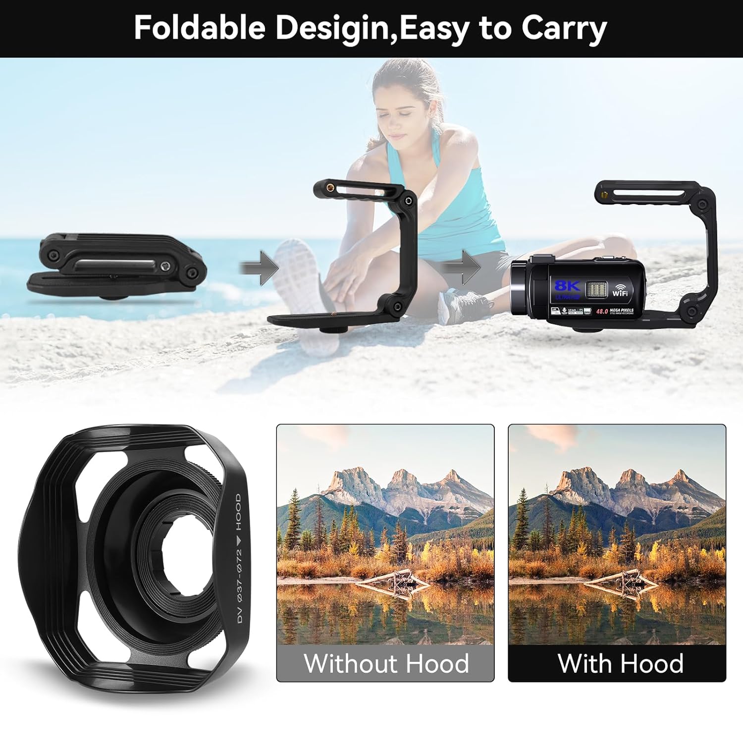 🎥【8K Video Camera & 48MP】This 8K video camera supports up to 8K 15FPS video recording and supports 48MP high resolution photos. Also support WiFi function, 18x digital camera, time-lapse photography function, PC camera function, touch screen, remote control, motion detection, filter function, built-in noise reduction, anti-shake, record while charging, etc. Beginners can use these special functions to record realistic high-definition videos and natural-color photos.