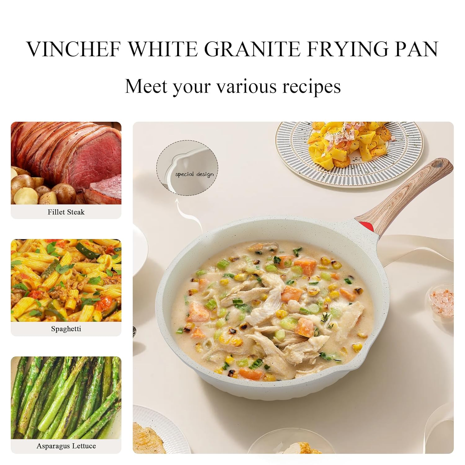 NONSTICK COATING: The Vinchef nonstick deep frying pan is made of German 3C+ ceramic coating technology, which is a high-tech material imported from Germany. It is a non-toxic, environmentally friendly, and healthy cooking surface. The nonstick coating not only makes the pan easy to clean, but also prevents food from sticking to the surface, making cooking more convenient and healthier.