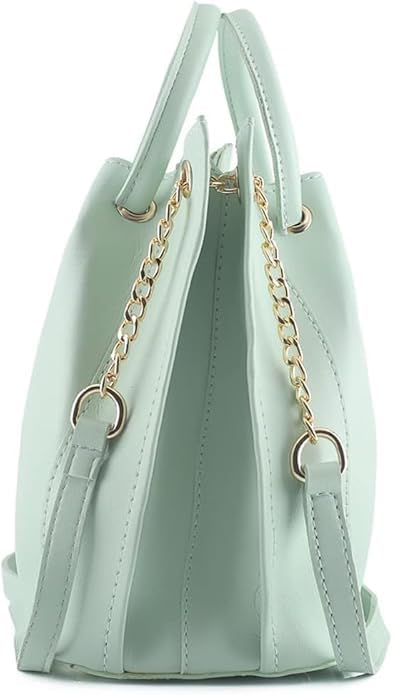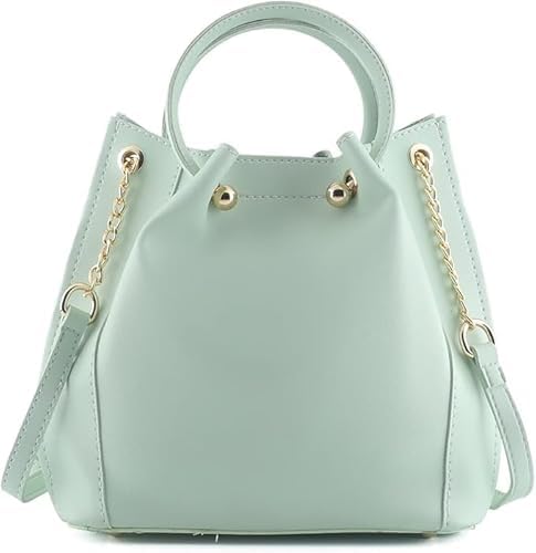 VIYANG SALES Pleated Bucket Style Handbag with Chain and Gold Detailing, Mint Green Colour