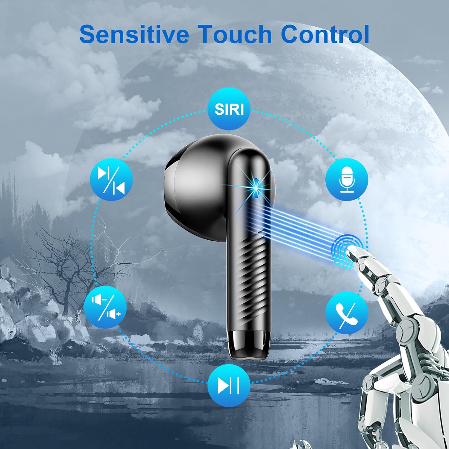 IP7 Waterproof and Touch Control: Bluetooth Earphones boast IP7 rated protection that resist daily splashes of water, sweat, rain which is perfect for fitness and travel. The Wireless Earphones in Ear adopt touch control mode, which is more convenient and concise.