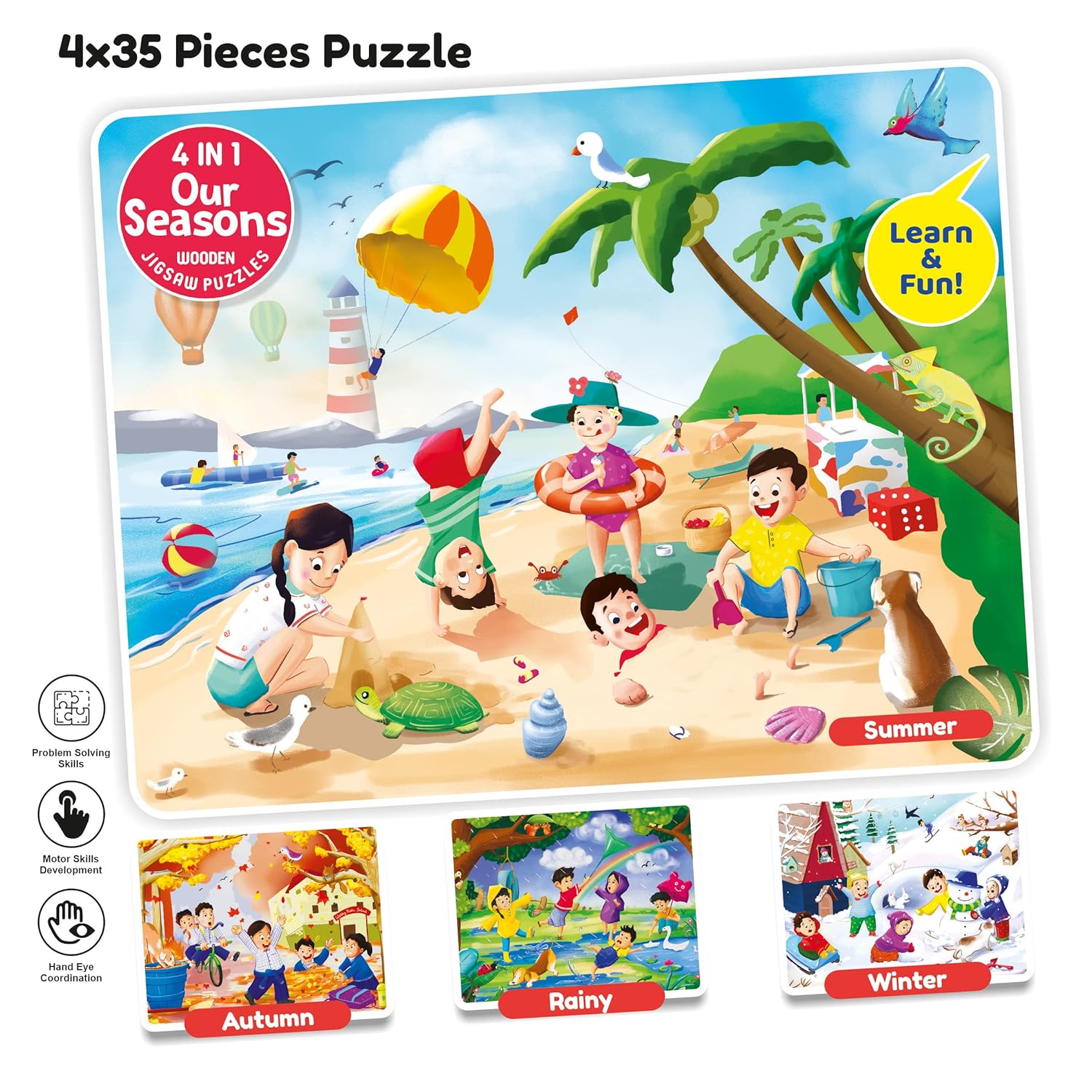 Webby 4 in 1 Wooden Season Jigsaw Puzzles for Kids for Age 4, 5 & 7 to 10 – Educational 35 Piece Jigsaw Puzzles for Kids