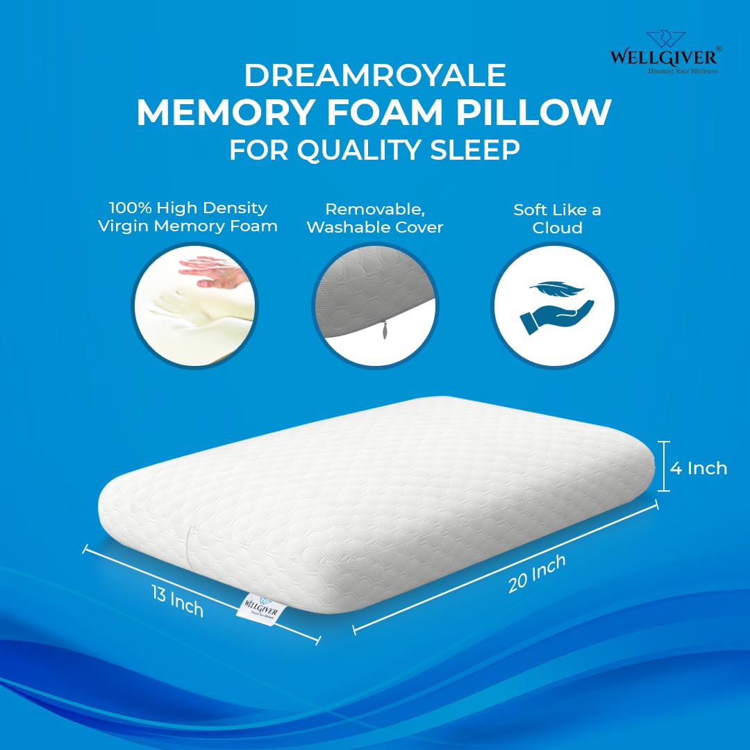 WELLGIVER Orthopedic Memory Foam Deep Sleep Pillow | 2 Years Warranty | Design for Neck & Shoulder Pain Relief | 20 x 13 x 4 Inch | Standard | Removable Zipper Cover | Pack 1
