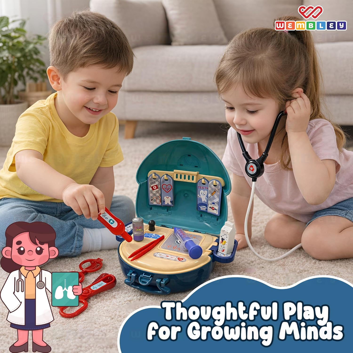 Wembley Doctor Set for Kids Boy & Girl 3-10 Year Old | Stethoscope Doctor kit Pretend Play Portable Suitcase | Safe and Non-Toxic Role Playset | Birthday Gift Toy for Kids Ages 3 to 10 Years Old