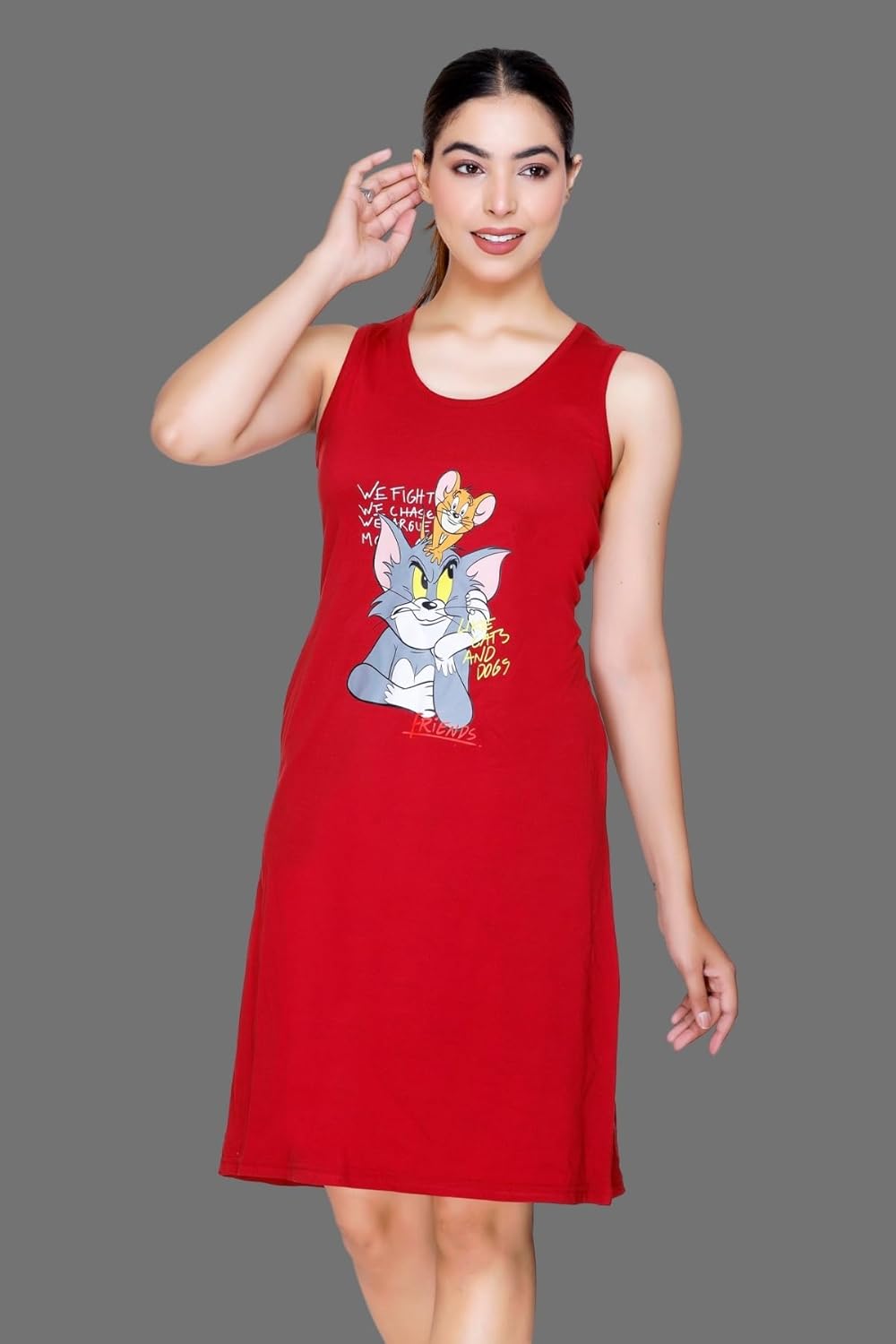 White Moon Women Nighty Printed Knee Length Night Dress Sleeveless Night Dresses for Women/Cotton Nighty for Women (Pack of 2)