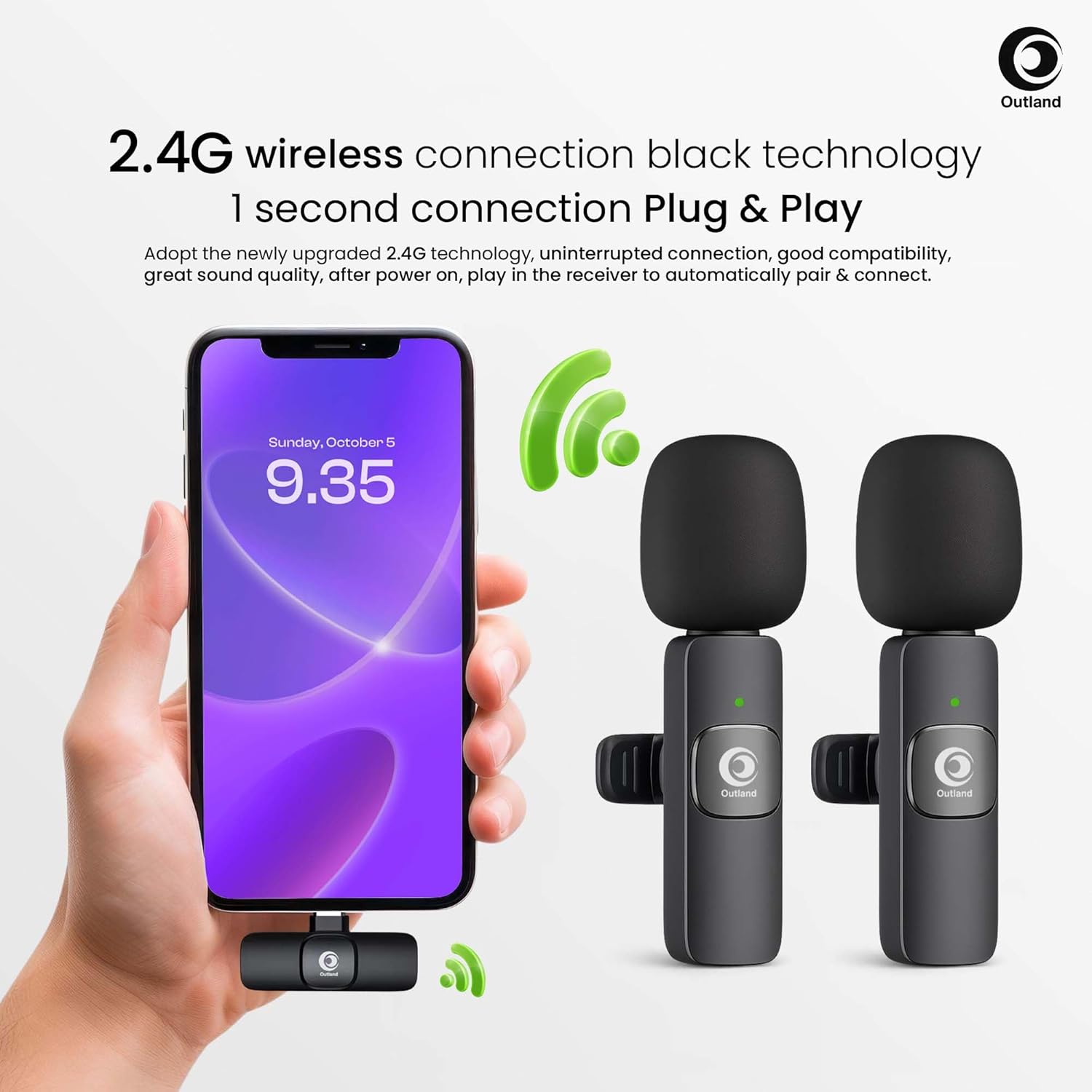 Upgrade Your Recording Experience With The Outland K9 Wireless Microphone — A Smart, High-Performance Clip-On Mic Built For Creators, Educators, Journalists, And Professionals. With Its Advanced Dual-Mode System (Type-C + Lightning Compatibility), This Digital Wireless Mic Works Seamlessly With Android Phones, iPhones, Cameras, And Laptops. Featuring True Plug-And-Play Connectivity, 360° Omnidirectional Sound Pickup, And Enhanced AI Noise Cancellation, It Delivers Crystal-Clear Audio For Vlogging, Youtube Videos, Live Streaming, Zoom Meetings, Reels, Podcasts, And Interviews. Enjoy Stable Transmission Up To 20–30 Meters With Ultra-Low Latency For Smooth, Lag-Free Recording. Lightweight, Portable, And Designed For Daily Use, The Outland K9 Mic Is Your Perfect Partner For Professional-Quality Sound Anytime, Anywhere.
