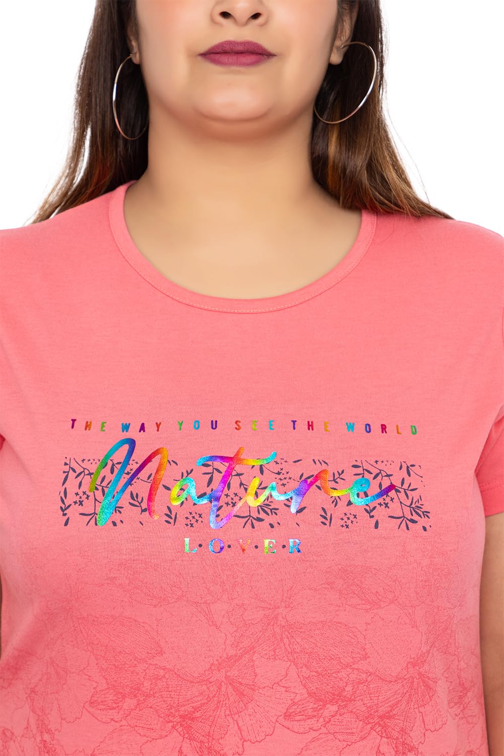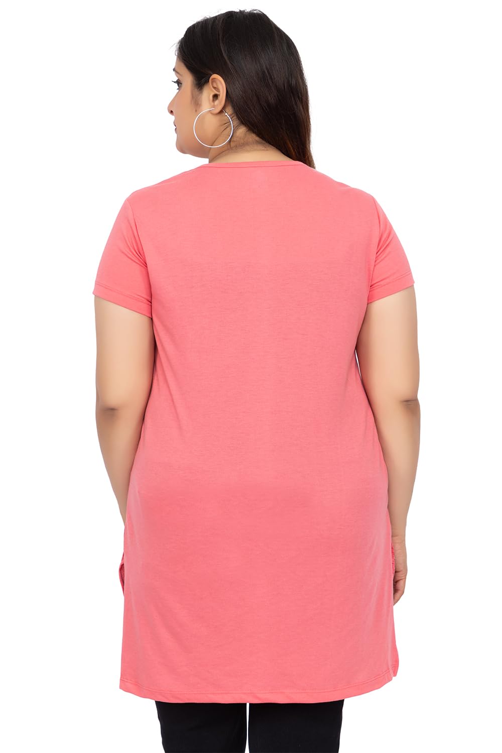 Women Printed Cotton Tshirt with Side Slits & Pocket