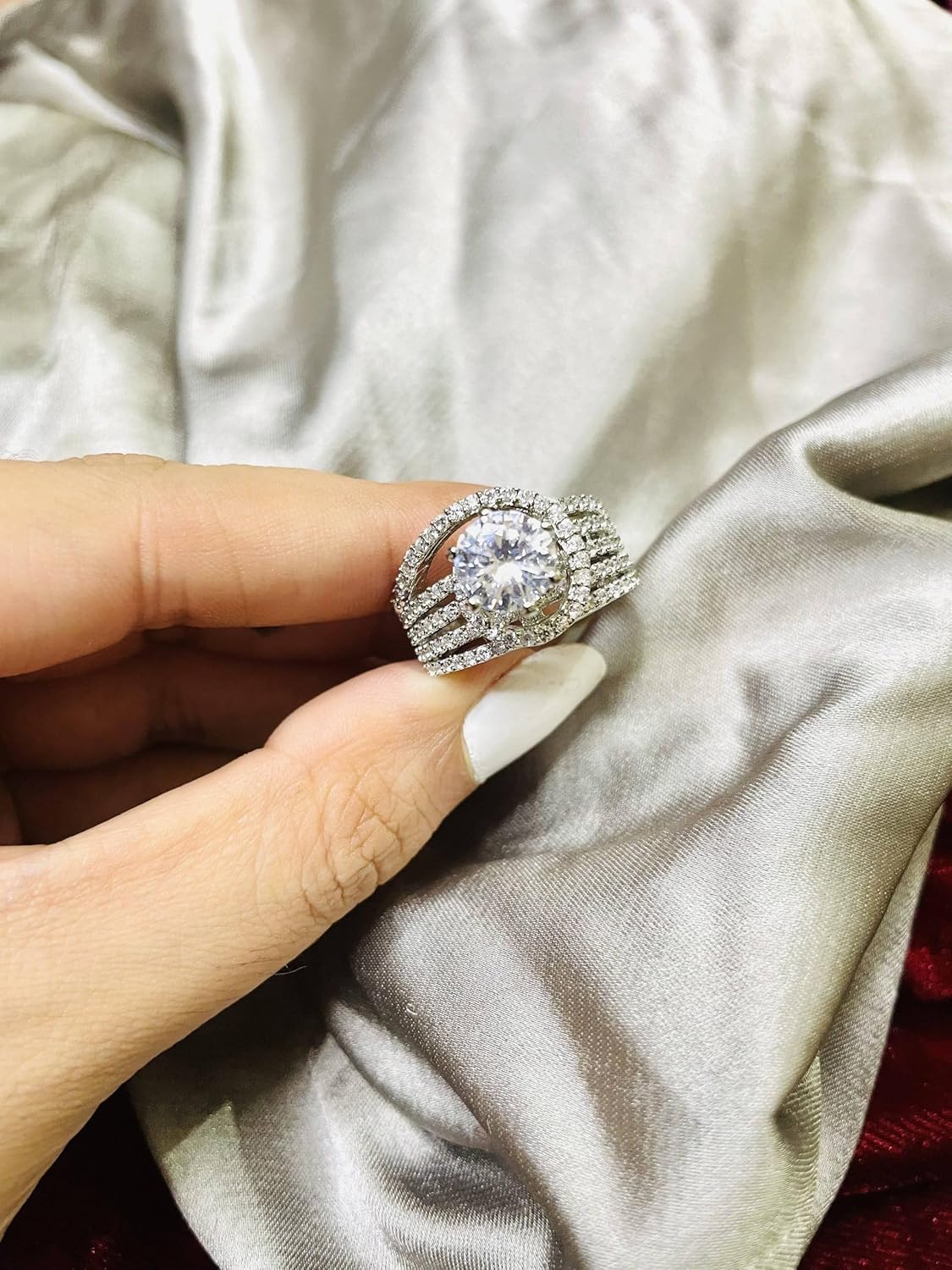 Women’s American Diamond Ring – Sparkling Round, Ideal for Engagement or Anniversary.