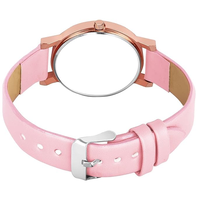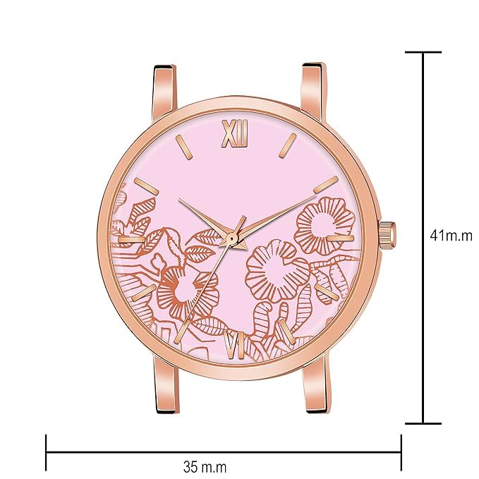 Women’s Analog Watch, Black Leather Strap, Rose Gold Case, Floral Dial Design, Roman Numerals