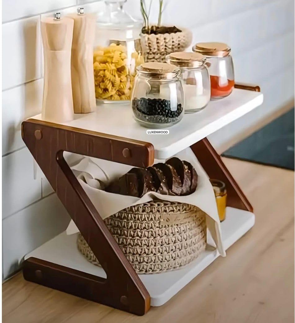 Upgrade your kitchen organization with this 2-Tier Wooden Spice Rack Organizer designed for efficient countertop storage. Measuring 33 x 16 x 25 cm, this compact kitchen rack organizer maximizes vertical space while maintaining a minimal footprint. The sturdy wooden frame combined with elegant white shelves provides both durability and a modern aesthetic that complements any kitchen décor. Perfect for storing spice jars, masala containers, condiments, seasoning bottles, and other daily kitchen essentials, this kitchen stand helps keep your countertop tidy and accessible. Its open design ensures quick visibility and easy access while cooking. Suitable for modular kitchens, apartments, or homes seeking organized storage solutions, this versatile kitchen organizer is both practical and stylish for everyday use.