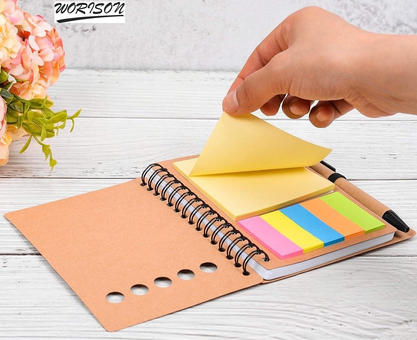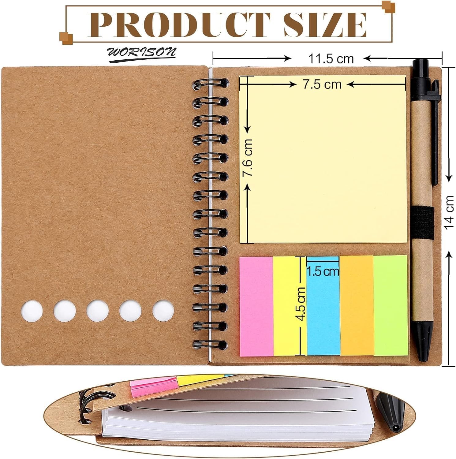 worison Ruled Spiral Notebook With Stickynotes Kraft Paper Cover Notepad With Pen In Holder Pack Of 4 Pc, 200 Pages