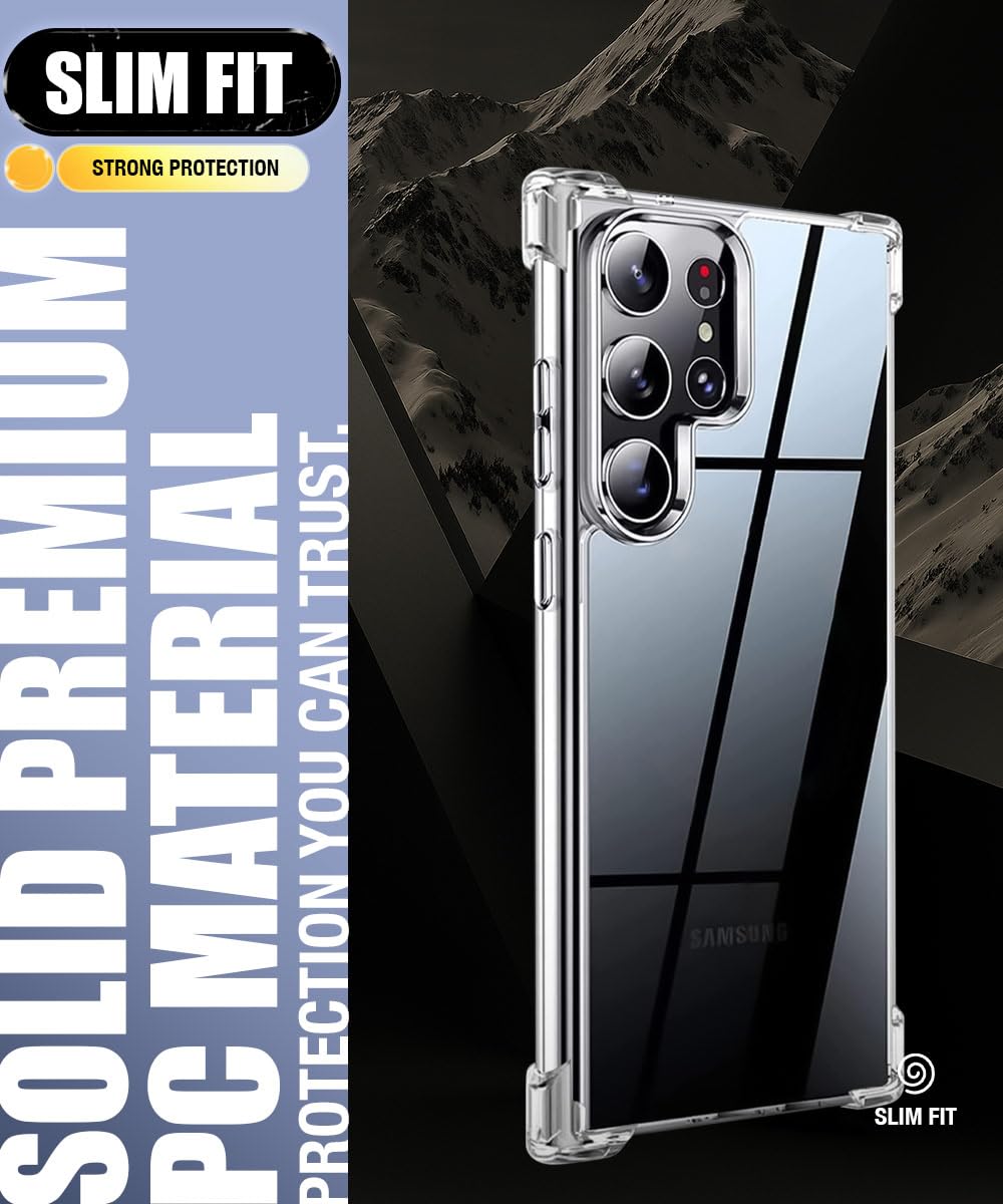 WOW IMAGINE Ultra-Hybrid Crystal Clear Back Case for Samsung Galaxy S24 Ultra 5G | Shockproof Design | Camera Protection Bump | Hard Clear Mobile Back Cover with Cushioned Edges – Transparent