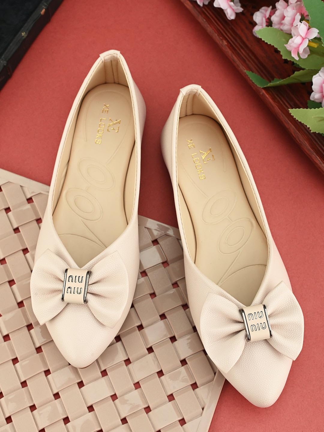 XE Looks Stylish Ballerinas with Gold Bow Accent – Comfortable, Versatile, and Ideal for Elevating Your Everyday Outfits for Girls & Womens