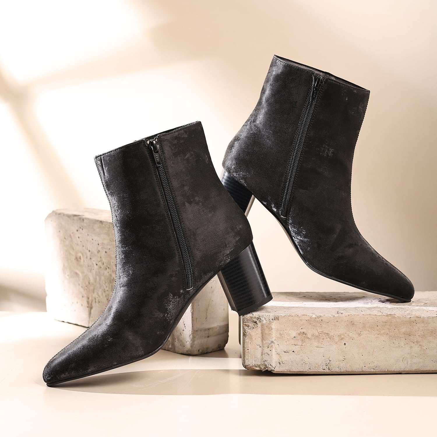 YOHO Midnight Velvet Ankle Length Heeled Boots For Women | Comfortable and Stylish with Low Block Heel | Casual,Formal Wear for Winter BOOT 108