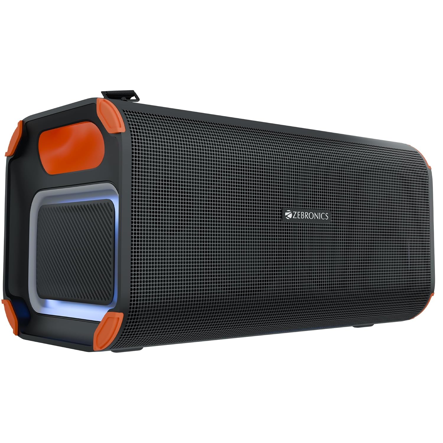 Zebronics Party Speaker, 150W, AURACAST Technology, Upto 5 Hours Playtime, 4 Drivers, BT v5.4, Wireless Mic, Mic & Guitar in, RGB, Mobile Holder, Splash Proof, AUX, USB, App Support (Prima Pro)