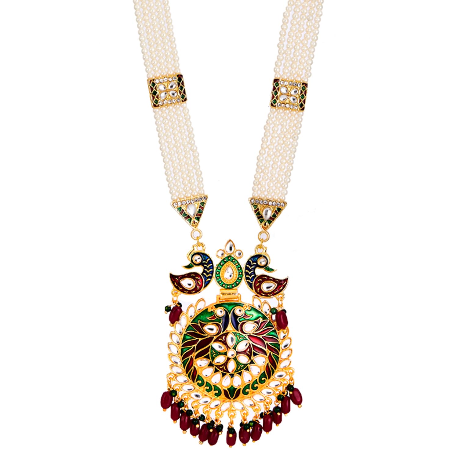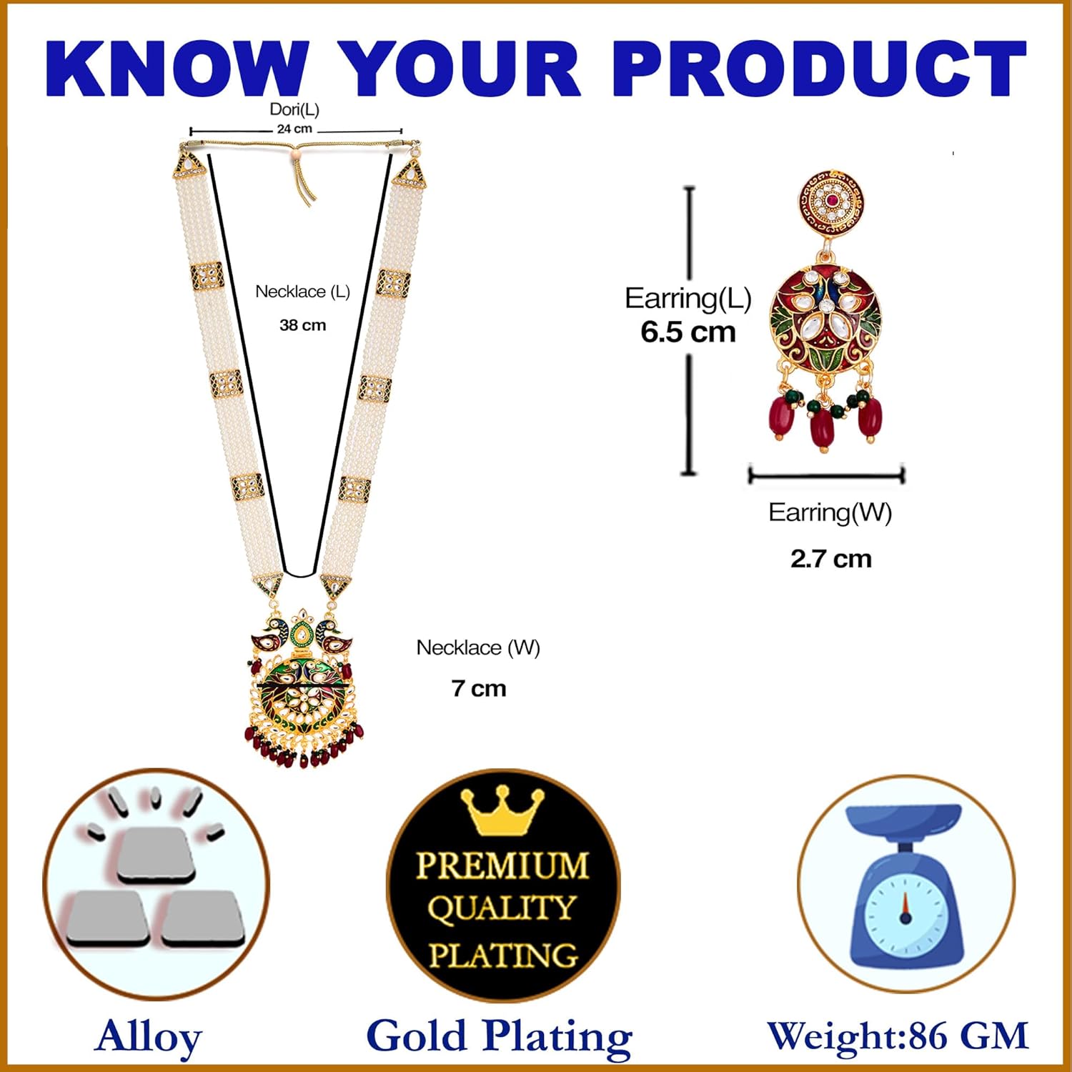 ZENEME Jewellery Set Gold Plated Long Necklace Hyderabadi Design Pearl Peacock Necklace Set With Earring Jewellery For Women & Girls