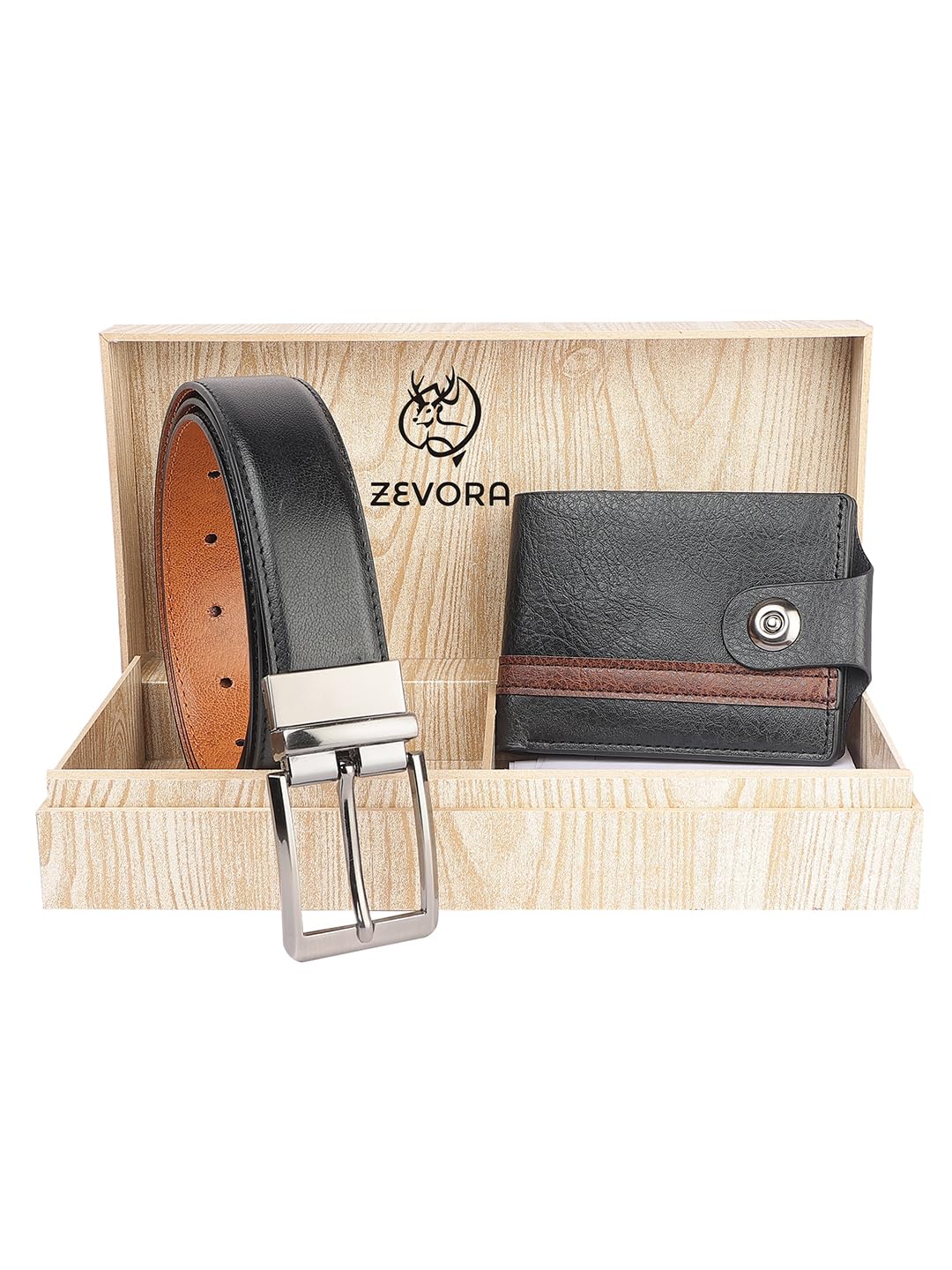 ZEVORA Leather Belt & Wallet Wooden Combo Gift Set for Men I Gift for Friend, Boyfriend,Husband,Father, Son, Corporate Gift Rakhi Combo (Pack of 2) 43AUTO16BRWOODCO